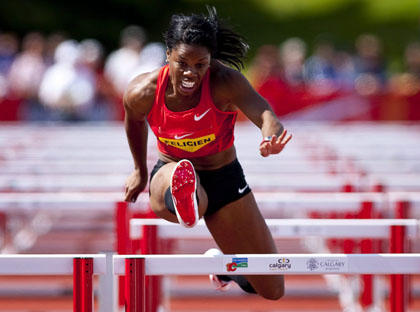 I ran hurdles (that’s Canadian Perdita Felicien) and loved high jump, learning to swish over that bar backwards – using the new-fangled ‘Brill bend’ after Canadian Debbie Brill. I wasn’t great but I had fun.