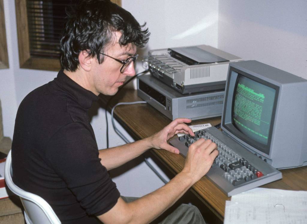 The computer sat on his desk, its small monitor displaying glowing green lettering on a black background with a cursor that was simply a flashing green “dash”. It had storage slots for 8-inch floppy storage disks and the newer 3.5-inch not-so-floppy ones. We used that Sanyo for word processing (letters, notes, home and work files) plus we learned how to create patient invoices for Larry to submit for his medical service payments. I smile when I think of those: for patient surnames at the beginning of the alphabet, the computer worked fairly quickly, but by the time I got to the R’s or S’s, I’d have enough time to put a load of laundry in before checking on progress!