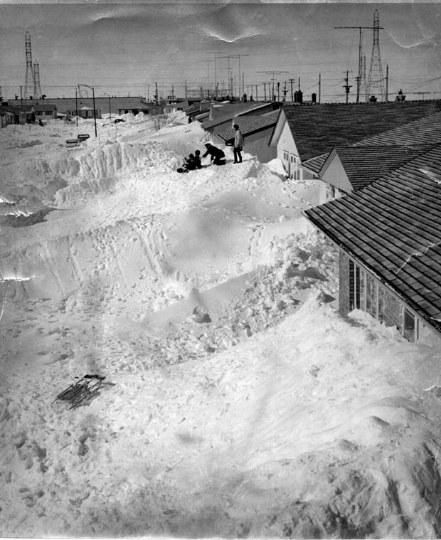 I remember being trapped in the house by snow – halfway up the kitchen countertop windows… and Dad climbing out those windows to free the doors.